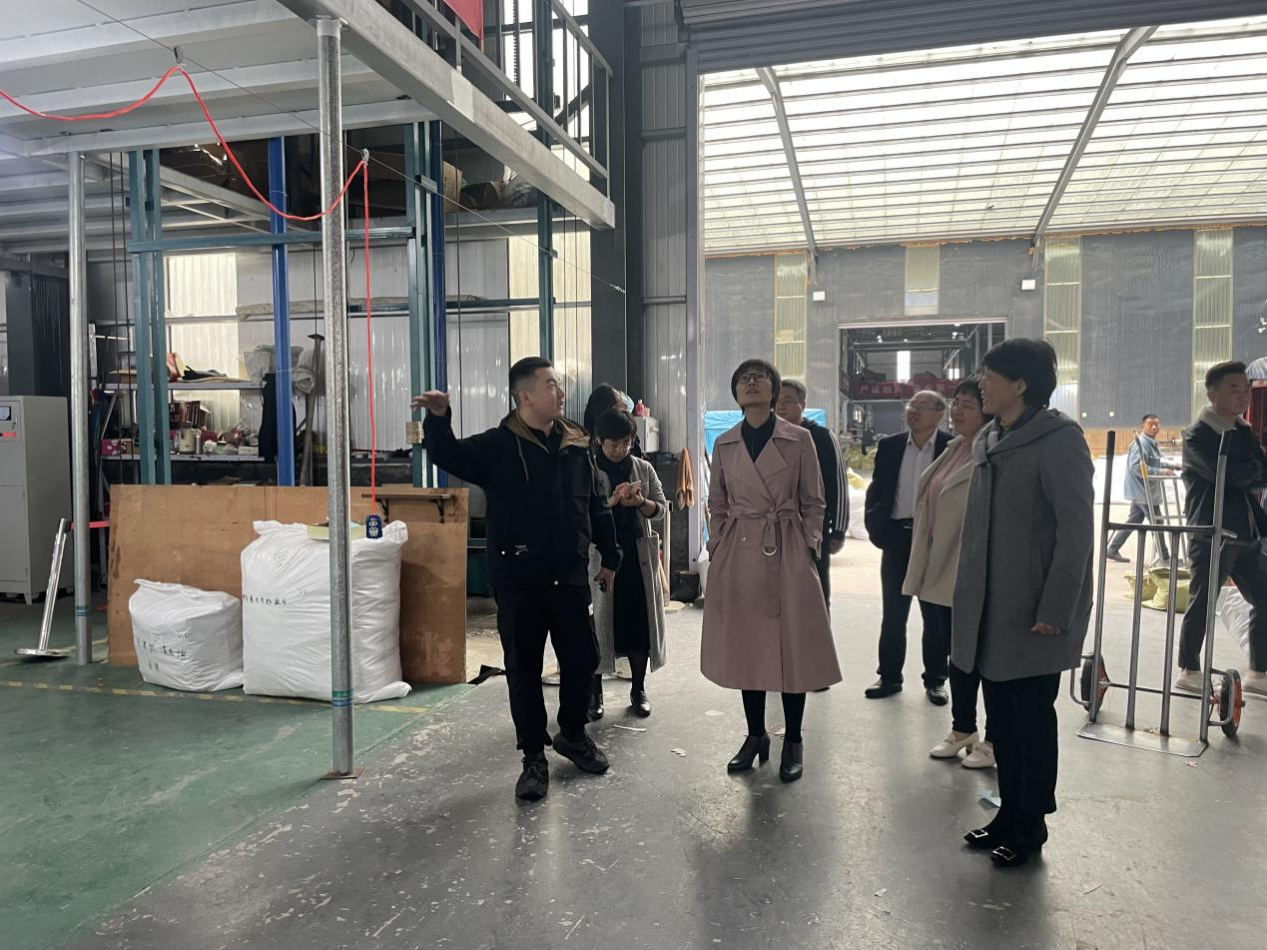 山东商院党委委员、统战部部长杨毅,党外知识分子联谊会会长郭素娟带领调研人员参观山东麦麦时装有限公司的仓储、物流区、产品展厅等,了解公司基本情况,随后双方就人才培养、校企融合等问题展开交流探讨。