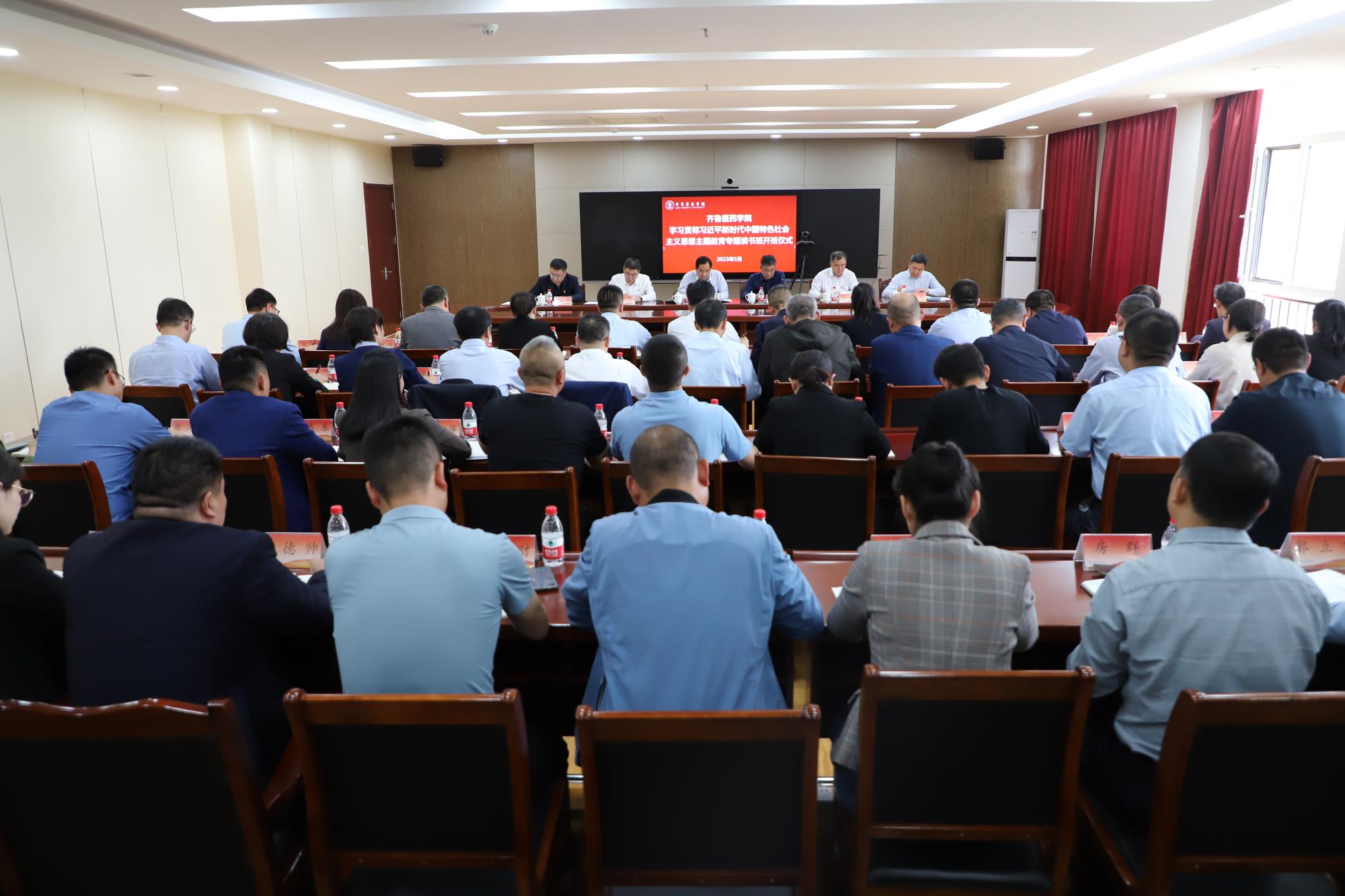 5月11日,齐鲁医药学院举行学习贯彻习近平新时代中国特色社会主义思想主题教育专题读书班开班仪式,董事长魏振东主持会议,党委书记吕传毅作动员讲话。