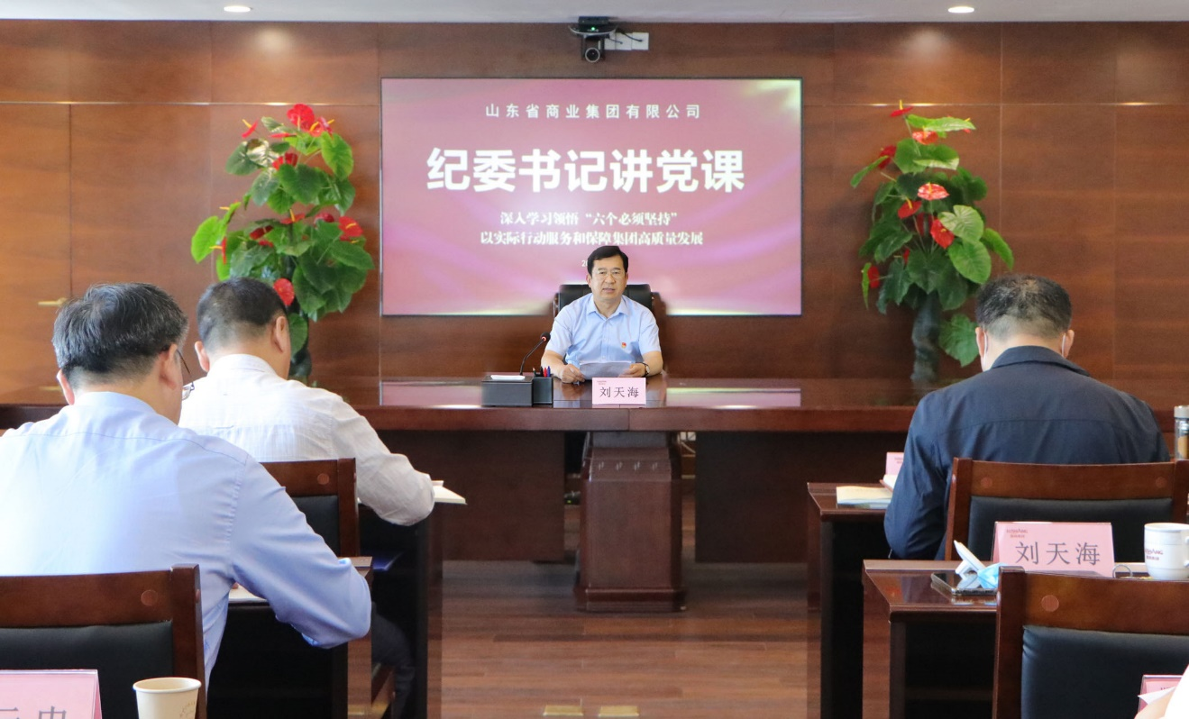 为扎实开展学习贯彻习近平新时代中国特色社会主义思想主题教育,6月5日,鲁商集团党委常委、纪委书记、省监委驻集团监察专员刘天海围绕“深入学习领悟‘六个必须坚持’ 以实际行动服务和保障集团高质量发展”为集团党员干部讲专题党课。集团党委书记、董事长王绪超,党委副书记、董事刘守亮,党委副书记、董事、副总经理朱华建,党委常委、董事、总审计师、工会主席刘德华参加,党委常委、董事、组织人力资源部部长李林主持。