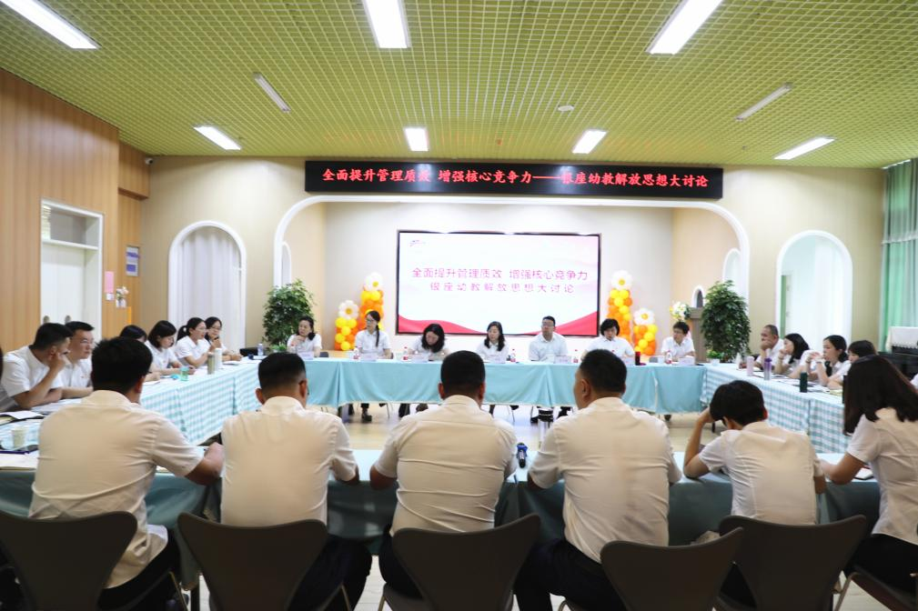6月27日,银座幼教开展解放思想大讨论,党委书记、董事长袁霞出席会议。