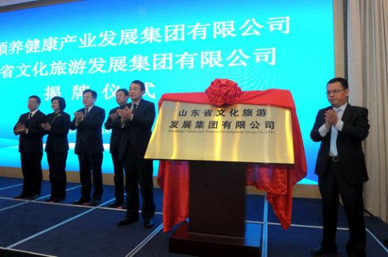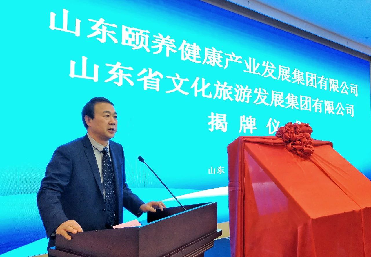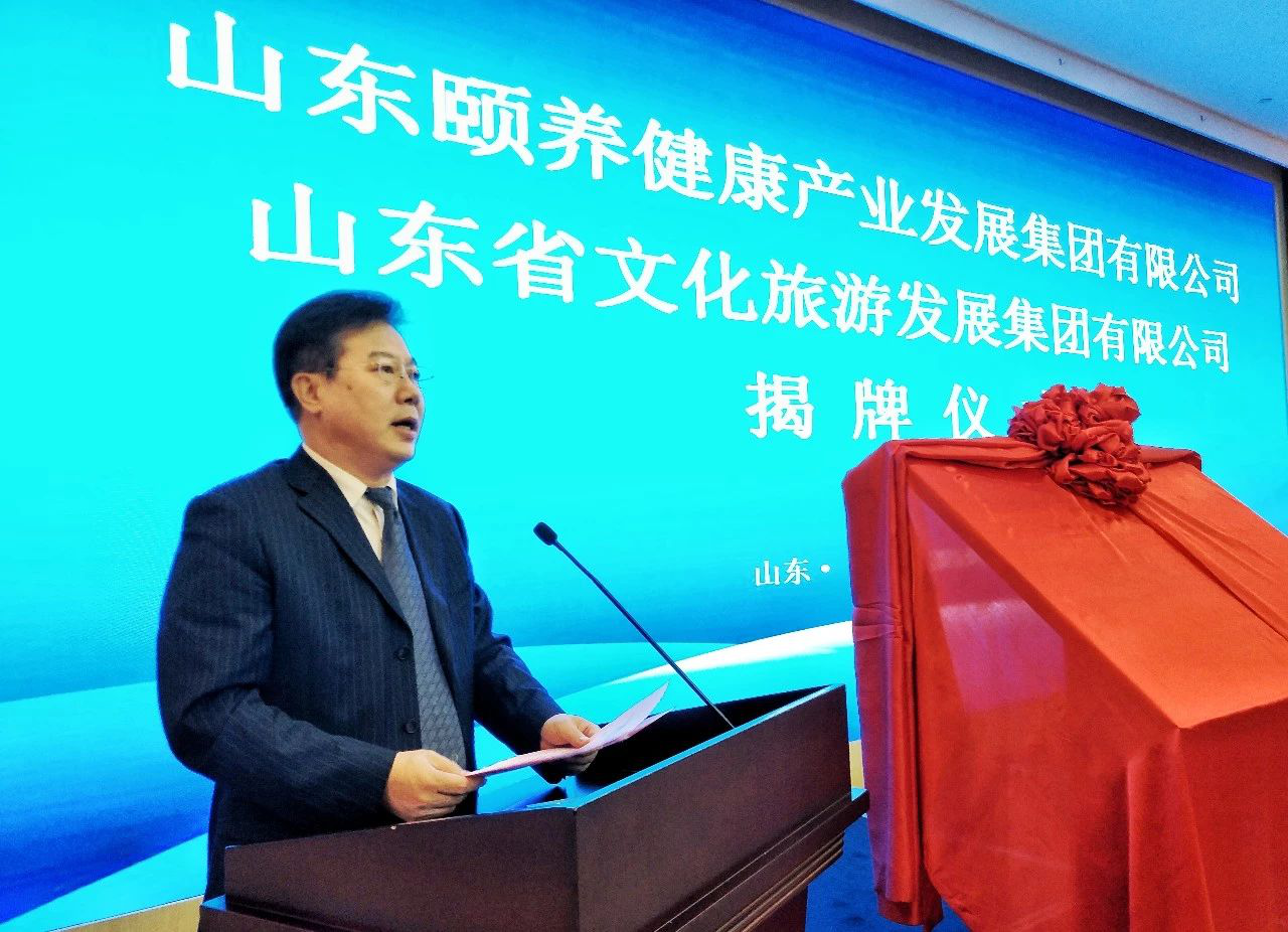11月30日上午,山东省文化旅游发展集团有限公司(简称山东省文旅集团)、山东颐养健康产业发展集团有限公司(简称山东颐养集团)揭牌仪式在山东大厦举行。省国资委党委书记、主任张斌出席仪式并讲话,鲁商集团党委书记、董事长高洪雷,鲁商集团党委副书记刘守亮共同为山东省文旅集团揭牌。