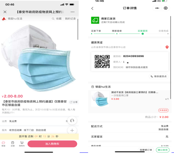 为支持银座泰安区域成为当地政府防疫物资定点发放通道,银座云生活创新科技能力,帮助消费者于设置时间段内在平台预定购买商品,消费者获得核销码后可在规定时间到线下门店就近核销自提。