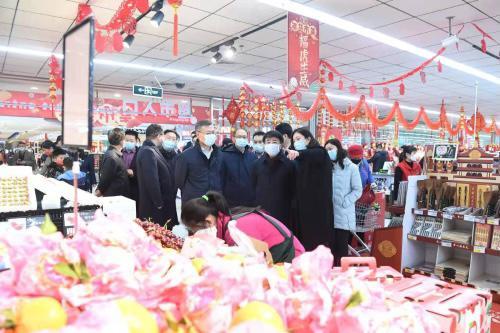 新春前夕,七里山店内客流如织、组织有序、年味浓厚,张德平认真听取了门店在民生保障、货源组织、顾客服务以及安全管控等方面的工作汇报,重点了解了节日市场供应、疫情防控、安全生产等情况,对门店所做的扎实全面工作给予充分肯定。