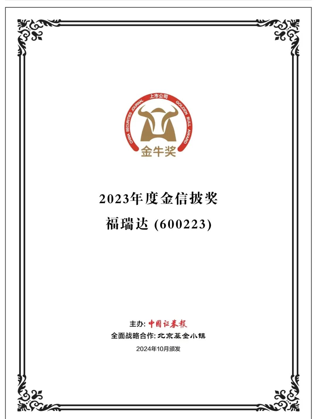近日,在2024上市公司高质量发展论坛暨第二十六届上市公司金牛奖颁奖典礼上,上市公司金牛奖榜单正式揭晓。福瑞达凭借在信息披露、投资者关系管理等方面的优异表现,荣获“金信披奖”。