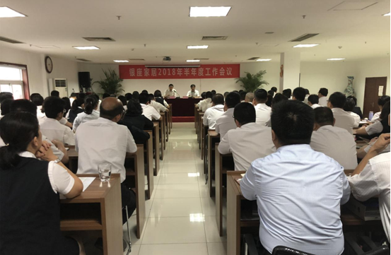 7月27日,银座家居召开了2018年半年度工作会议。公司领导班子、总经理助理,总部中副二级以上管理人员,各门店(公司)班子成员、部门负责人等101人参加了会议。