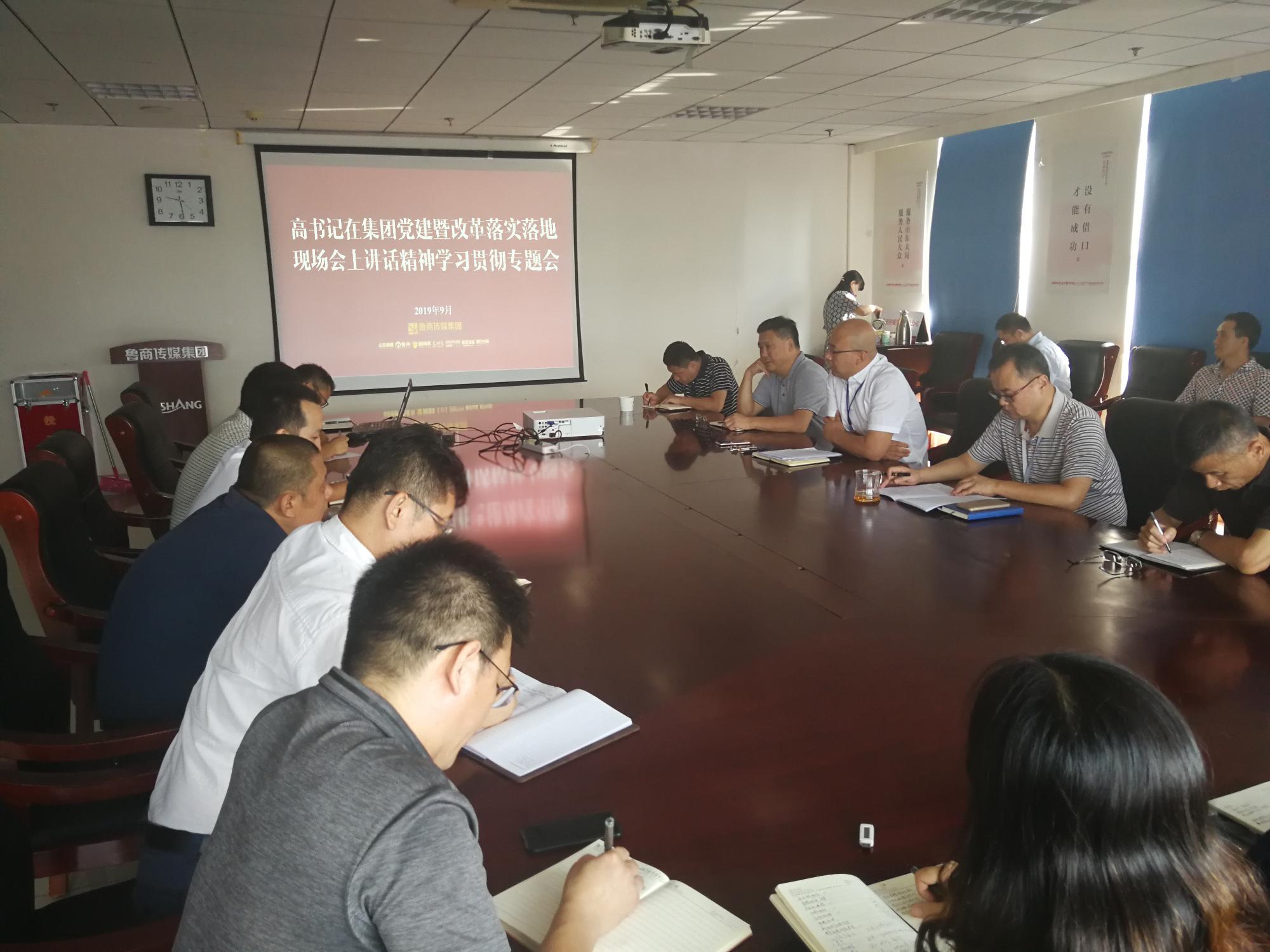 9月9日,鲁商传媒集团有限公司(以下简称鲁商传媒)召开专题会议,学习贯彻省商业集团有限公司(以下简称鲁商集团)党委书记、董事长兼省文旅集团董事长高洪雷在集团党建暨改革落实落地现场会上的讲话。鲁商传媒党委书记、董事长孙超主持,党委副书记、总经理庞道锋对讲话作全文传达。