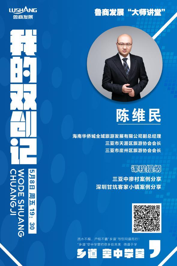 5月8日,鲁商发展“大师讲堂”举办第7期,此次讲座采取线上直播形式,海南华侨城全域旅游发展有限公司副总经理陈维民带来《我的双城记——华侨城新型城镇化与乡村振兴的案例分析》专题讲座。