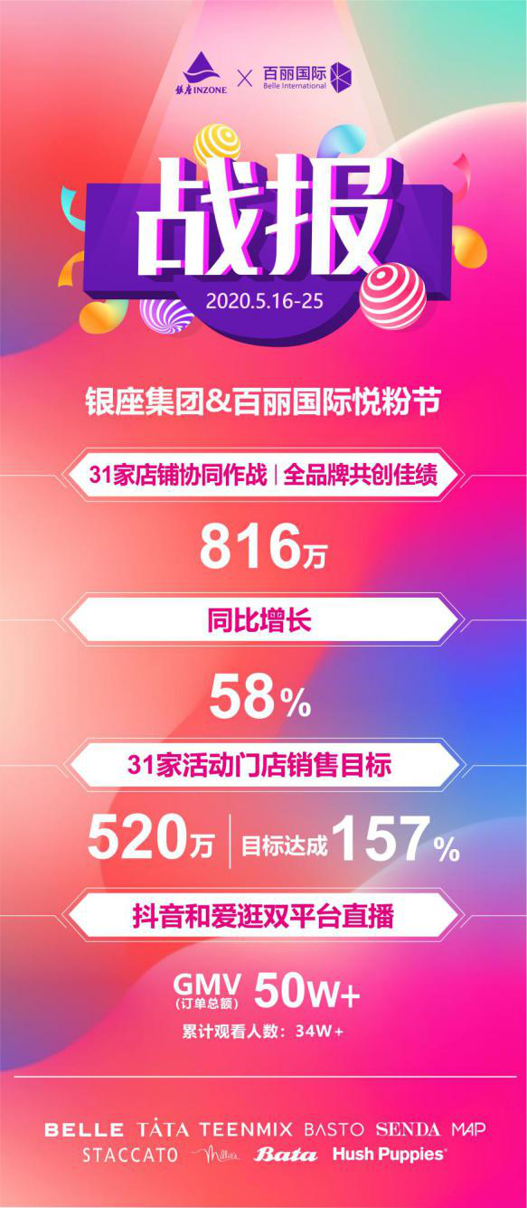 5月16日,银座集团携手百丽国际开展为期10天的“百丽悦粉节“大型品牌联合营销活动,31家门店+百丽13个鞋履品牌强强联合,3000个sku 1折起售。5月25日,活动完美收官,刷新各项记录。