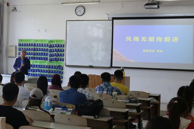 5月27日上午,青岛酒店学院组织开展2020年春季学期开学第一课活动,党委书记李达以“风雨无阻向前进”为题,为首批返校学生授课。活动由副院长宫恩龙主持。
