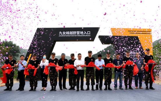 山东省汽车摩托车联合会秘书长胡庆节,泰安市岱岳区道朗镇党委副书记、镇长李安军,区教体局党组成员段文强,越野e族山东大队泰山分队动酷基地总经理毛东升,泰安力虎总经理助理王蕾,山东省乡村振兴齐鲁样板研究院副院长聂军维,鲁商九女峰(泰安)乡村振兴有限公司总经理于在武共同为营地剪彩。