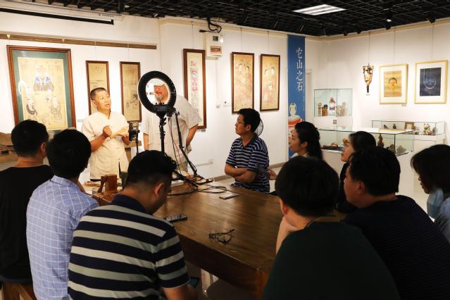 活动利用线上直播和线下论坛相结合形式展开,青岛市民间文艺家协会副主席、青岛手工艺协会会长、青岛手工艺博物馆馆长鲁汉科普了端午节与榼子的关系和传承渊源,讲述了端午节的奇闻趣事、“五毒饼”食俗的渊源以及榼子的制作工艺。青岛饽饽榼子非遗传承人、青岛市工艺美术大师王丕文现场操刀,从选材、加工和雕刻等流程上,为大众演示了榼子的制作方法。