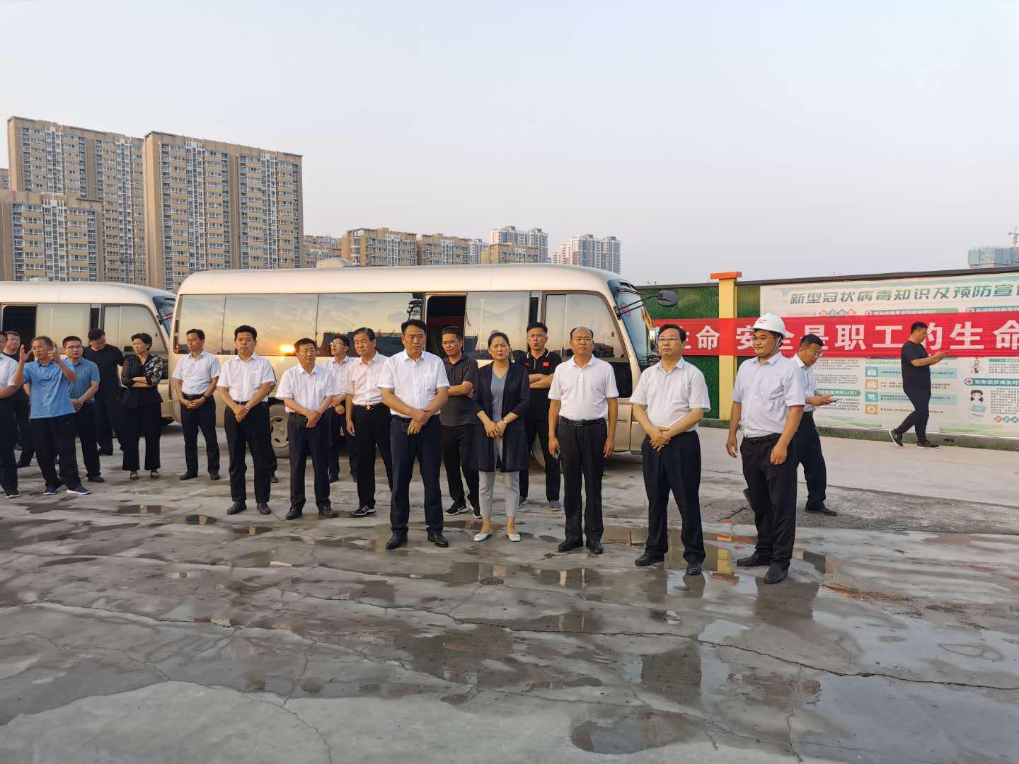 张福龙一行首先深入施工一线,现场察看了项目建设情况,并听取了相关负责人关于项目规划设计方案、建设进度及安全文明施工等方面的汇报。张福龙对项目建设工作给予充分肯定,并要求要切实做好安全文明施工,坚持高标准、严要求,在保证工程质量安全的前提下抢抓工期,确保工程建设有序推进。