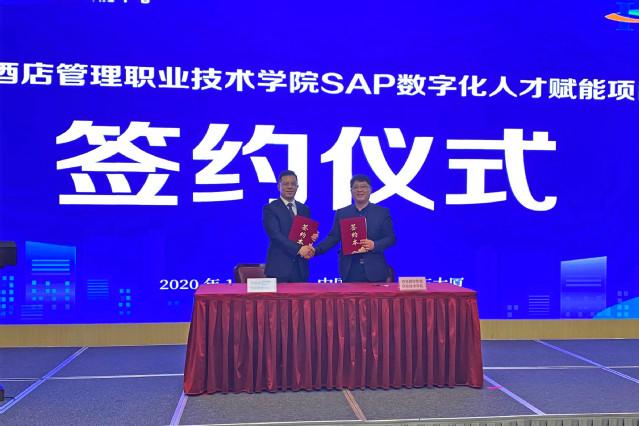 12月4日,“升级数字思维,打造智慧企业”论坛在济南举行。青岛酒店学院工商管理学院副院长潘华南参加论坛,就数字商业职业化人才培养模式与参会专家进行了交流,并与SAP(北方)创新赋能中心董事长王涛共同签署校企共育数字化商业人才合作协议。