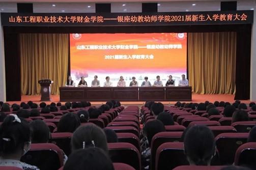 9月28日,山东工程职业技术大学财金学院-银座幼教幼师学院2021级新生入学教育大会举行。银座幼教党总支书记、董事长袁霞,山东工程职业技术大学财金学院执行院长毕春晖出席会议。