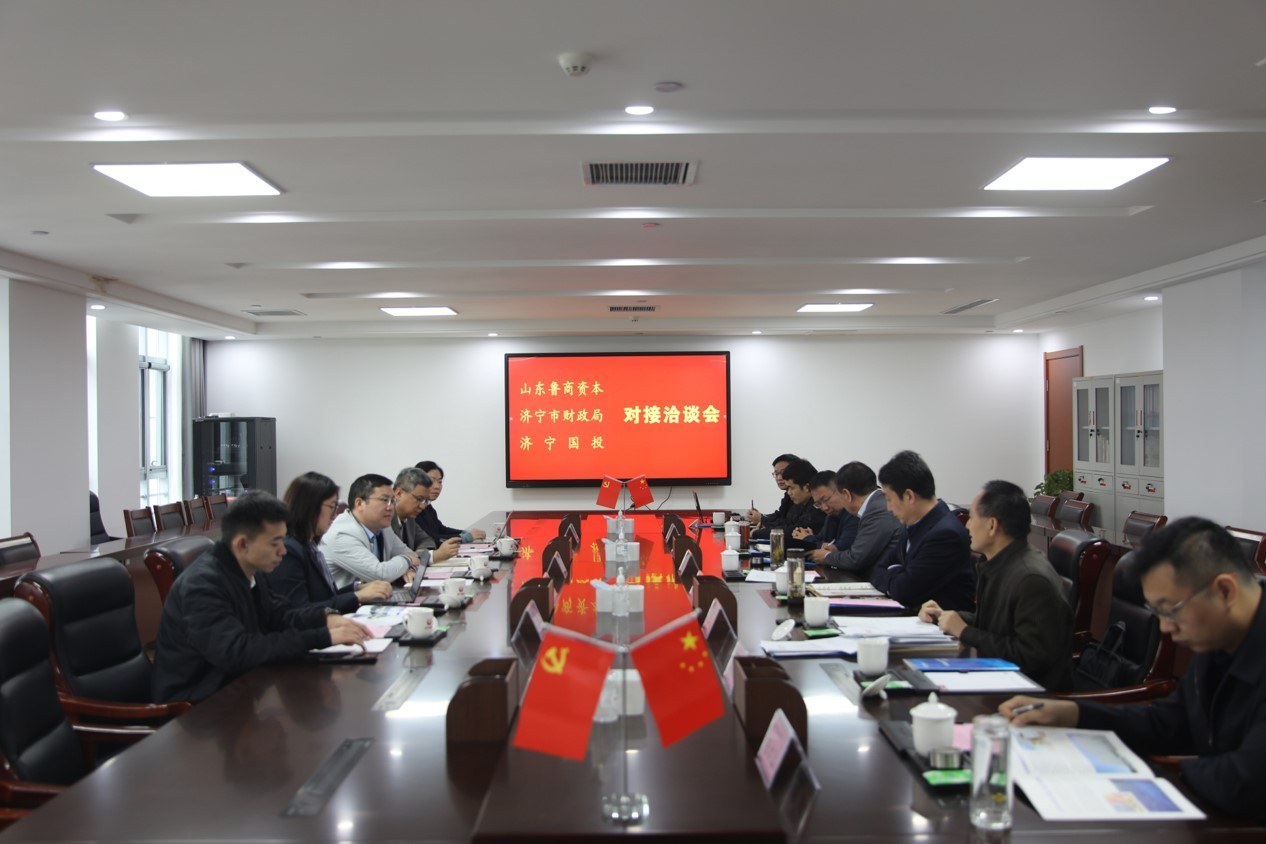 10月21日, 鲁商资本、山东鲁商私募基金管理有限公司(简称鲁商基金)同济宁市财政局、济宁市国有资产投资控股有限公司(简称济宁国投)在济宁国投大厦就双方基金合作展开对接洽谈会,鲁商资本董事长纪军令、总经理王军、副总经理公维晓,鲁商基金总经理蔡玉茹,济宁国投董事长虢洪增、市财政局副局长孔令锋参加会议。