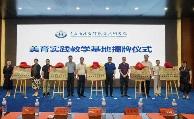 9月19日下午,青岛酒店学院举行美育实践教学基地揭牌仪式,青岛市文联主席王绍波,山东省民俗学会常务理事朱振华,青岛市文旅局非遗处处长冯耀东,青岛酒店学院校长姜玉鹏出席。