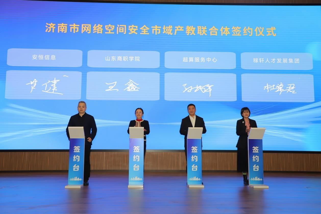 会上举行了济南市网络空间安全市域产教联合体签约以及济南超算数字经济生态创新圈产教研融合发展战略合作签约仪式。