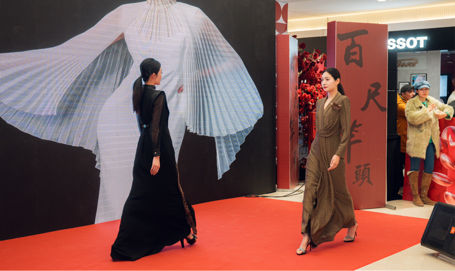 银座商城一号中庭1F公共空间,常设创艺秀场空间,定期举办品牌联合时装秀活动,服装、彩妆等品牌的发布会等。消费者可以通过沉浸式的感官体验,情感与精神的互动需求,不断刷新“文化艺术+”模式的消费体验。这也是国内首个百货业态常设秀场空间。