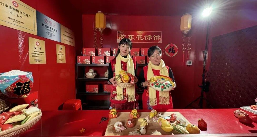 在央视综艺频道的《新春非遗之夜》上,山东城市服务职院教师贾雨萍和女儿林言竹,携手将胶东地区的非物质文化遗产——花饽饽,带到了全国观众的面前。以面粉为原料,借助简单的工具,她们将面团捏塑成形态各异的人物、活灵活现的动物和鲜艳美丽的花草树木。胶东花饽饽源自民间,植根于人民生活,已成为民俗风情独特的表现方式。这项在胶东大地上传承了几百年的风俗,在央视的舞台上再次焕发出璀璨光彩。