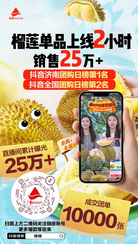 为完善海外供应链体系,让消费者更方便快捷地买到源头好品,银座超市采购团队赴泰国东部金枕榴莲核心产区尖竹汶府考察10余家工厂,重点围绕采摘、选果、加工、保鲜、催熟、运输、温控、报关、清关等全链路,并综合优选确定合作工厂。同时,银座超市积极拓展线上渠道,通过抖音本地直播、美团、饿了么等线上平台提前预售,抖音本地直播平台2小时销售1万余斤榴莲。