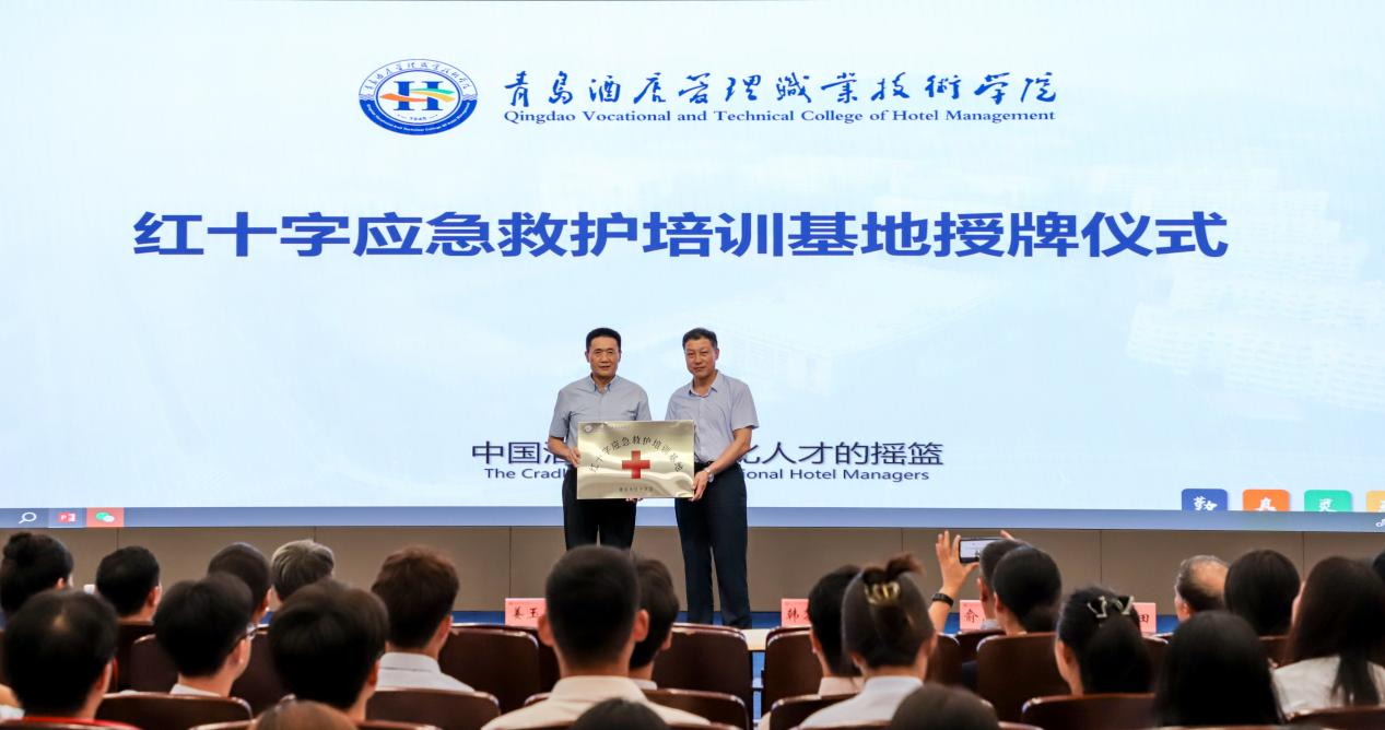 近日,青岛酒店管理职院红十字应急救护培训基地授牌仪式在学术报告厅成功举行,这是青岛高校首个红十字应急救护培训基地。