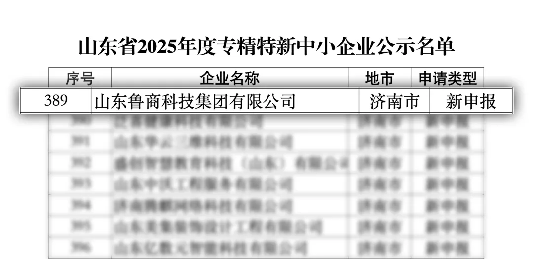 近日,鲁商科技顺利通过了省工信厅山东省2025年度专精特新中小企业公示,荣获山东省“专精特新”中小企业称号。