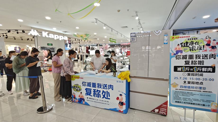 滨州黄河店举办公益活动“健康减重换鲜肉”,整合商业、医疗、健身等多方资源——医院提供体重咨询、中医建议及三伏贴服务,健身机构定制个性化运动方案,口腔医院开展口腔检查并赠送护理礼品。活动吸引了近300名市民参与,带动销售5.95万元,75人达成目标领取鲜肉684斤。参与者在科学管理过程中体验健康乐趣,收获身心双重奖励。