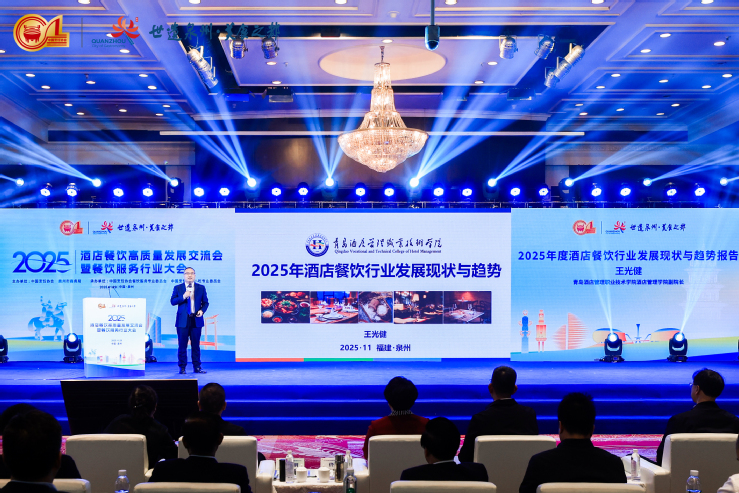 青岛酒店管理职院受邀参加“2025酒店餐饮高质量发展交流会暨餐饮服务行业大会”并作开场报告