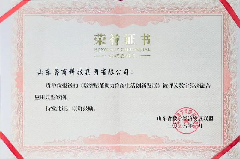 近日,山东省数字经济发展联盟公布数字经济融合应用典型案例,鲁商科技报送的《数智赋能助力鲁商生活创新发展》案例成功入选。
