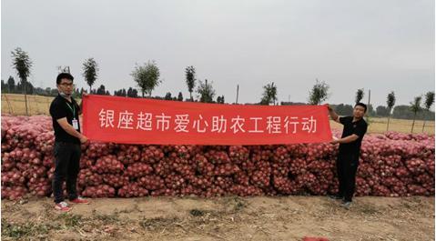 银座马鞍山店、华信店、北园店、济洛路店、金牛店、无影山店助力济阳仁凤镇姚家村,消化滞销洋葱约1万斤;银座东营旗舰店、文汇店主动联系河口区义和镇、东营区龙居镇采购洋葱2000余斤;银座东营广饶店利用早市开展爱心助农活动,自采广饶县南十里铺村芸豆1000斤、洋葱2000多斤;银座聊城旗舰店帮助沙镇果农开展果蔬“农超对接、爱心助农”活动,采购1万斤洋葱;滨州区域先后与惠民李庄大蒜、圆葱基地、大齐村果农达成合作,采购大蒜4万余斤、洋葱5万余斤,黄金杏5000余斤。